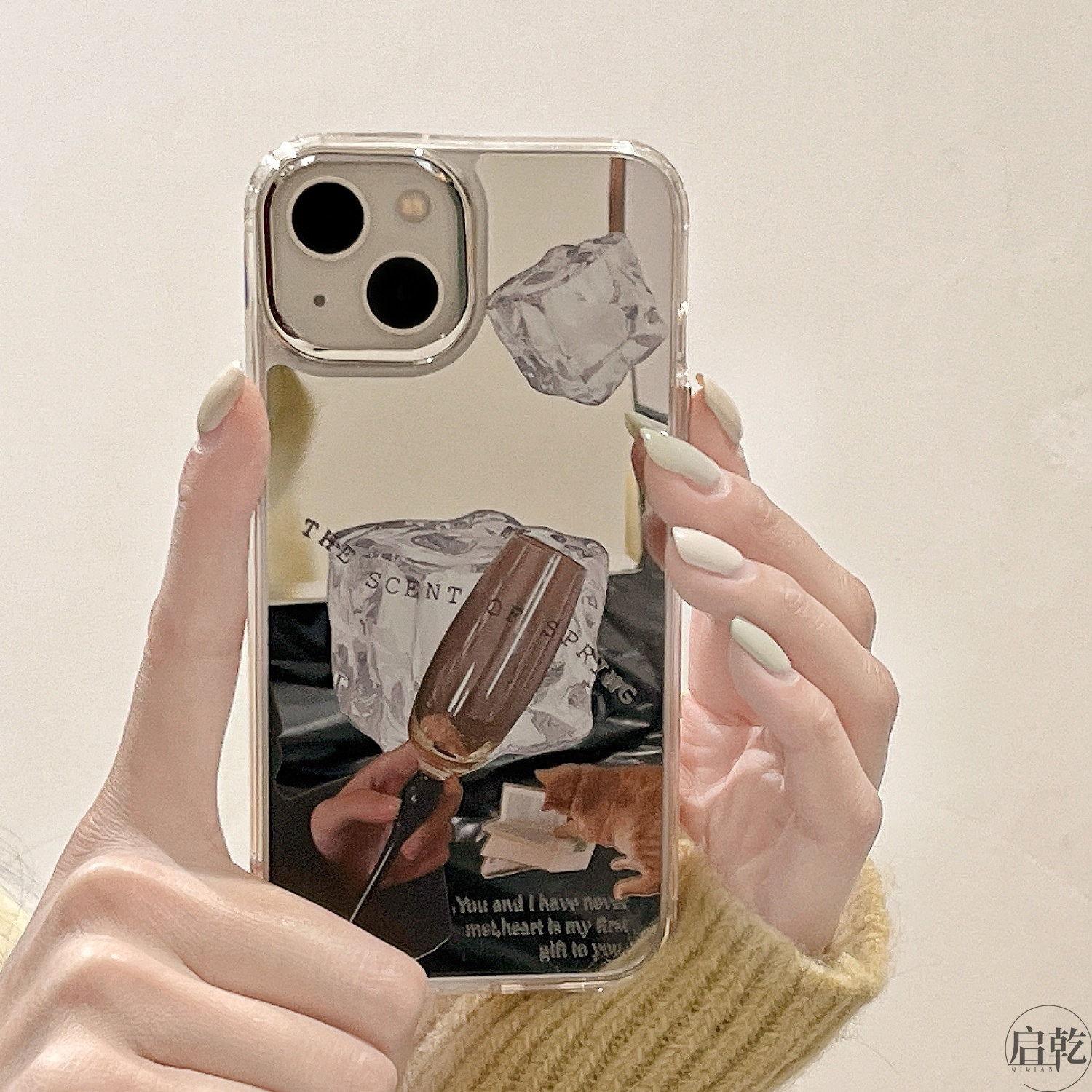 镜面酒杯猫咪iphone14手机壳适用苹果13promax日韩网红12/11补妆镜子14promax冷淡风高级感女神新款个性启乾