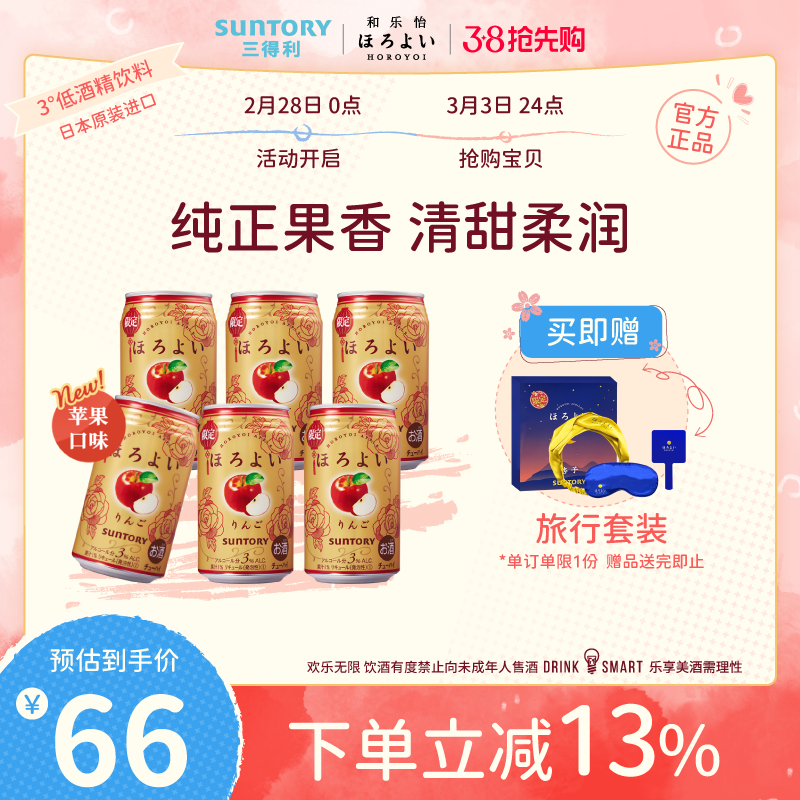 三得利和乐怡气泡酒微酒感网红低度女士预调酒果酒苹果味350mL6罐