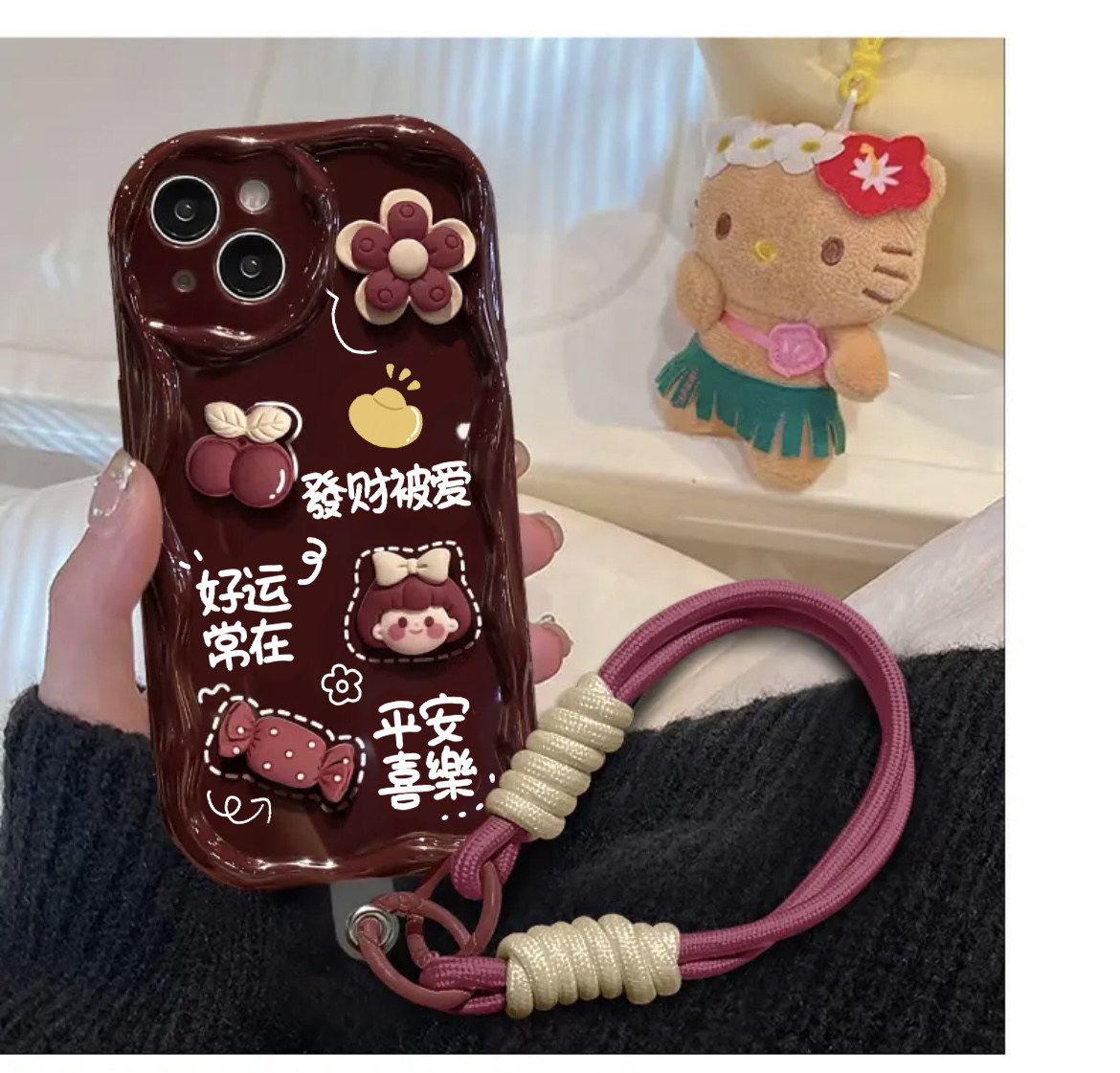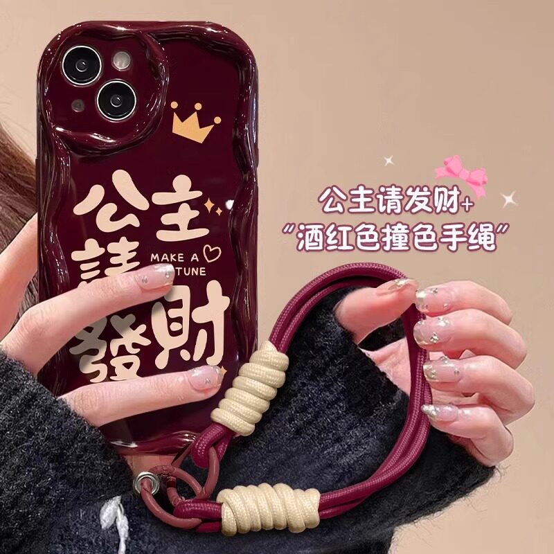 發财女孩公仔适用苹果15/14promax手机壳华为mate60pro酒红挂绳nova11小米14oppo红米vivo卡通iphone13保护套