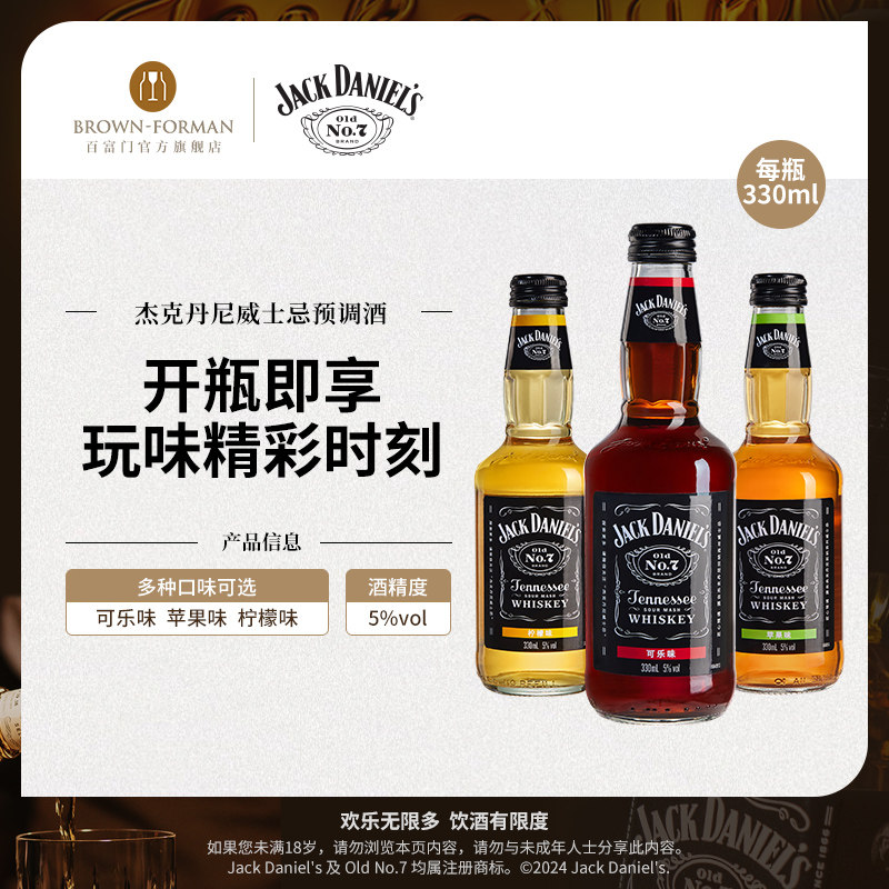 杰克丹尼 威士忌 预调酒 柠檬味苹果味可乐味6瓶装正品鸡尾酒前红