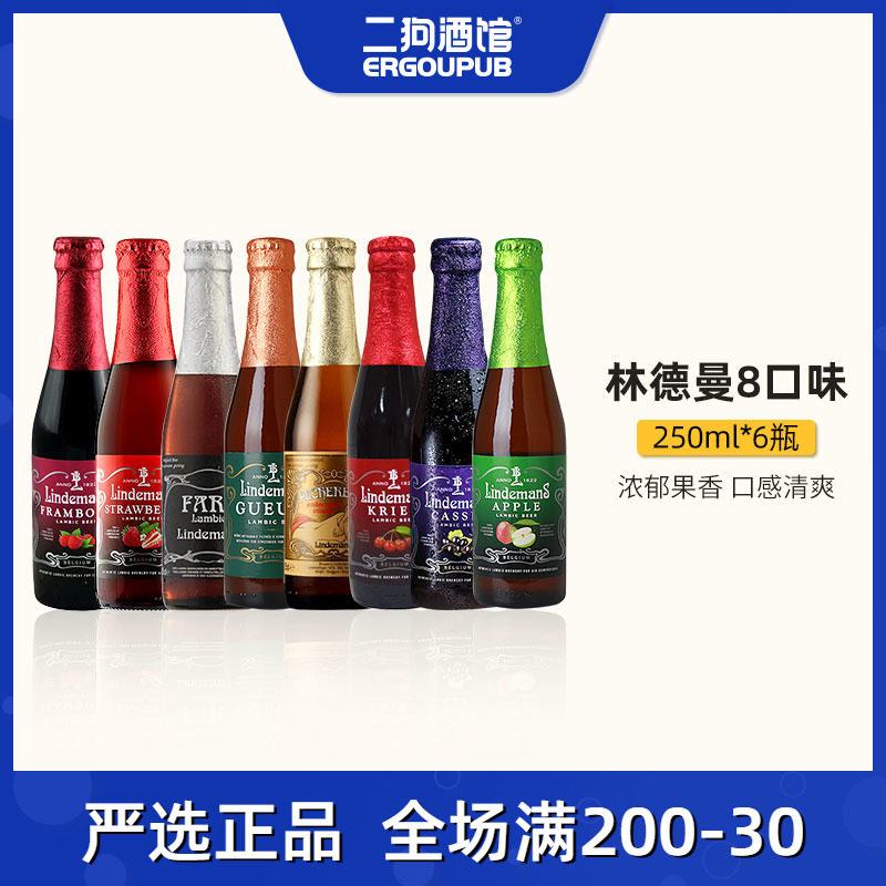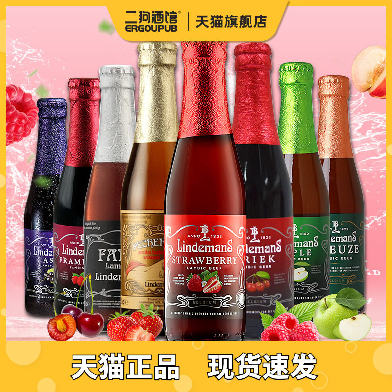 比利时进口林德曼果味女士微醺精酿啤酒桃子樱桃草莓苹果山莓6瓶