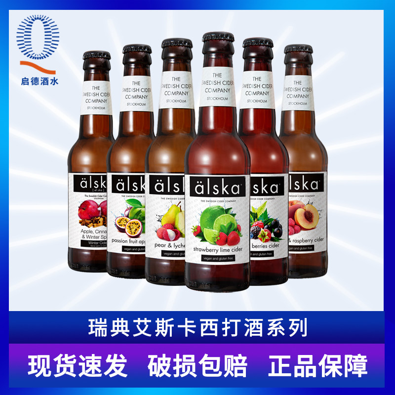 6瓶英国进口alska艾斯卡啤酒肉桂百香果苹果北欧莓果酒西打酒330m