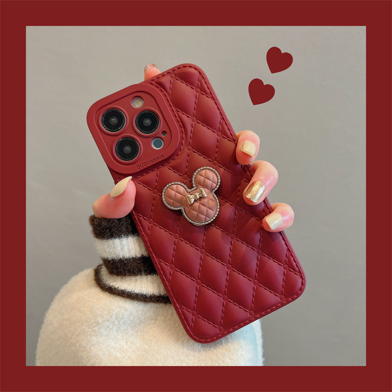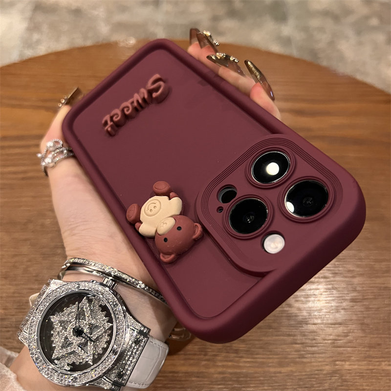 酒红相框立体小熊苹果15手机壳苹果14新款iphone15promax高级感苹果13套12全包镜头ProMax防摔Pro女PM潮适用
