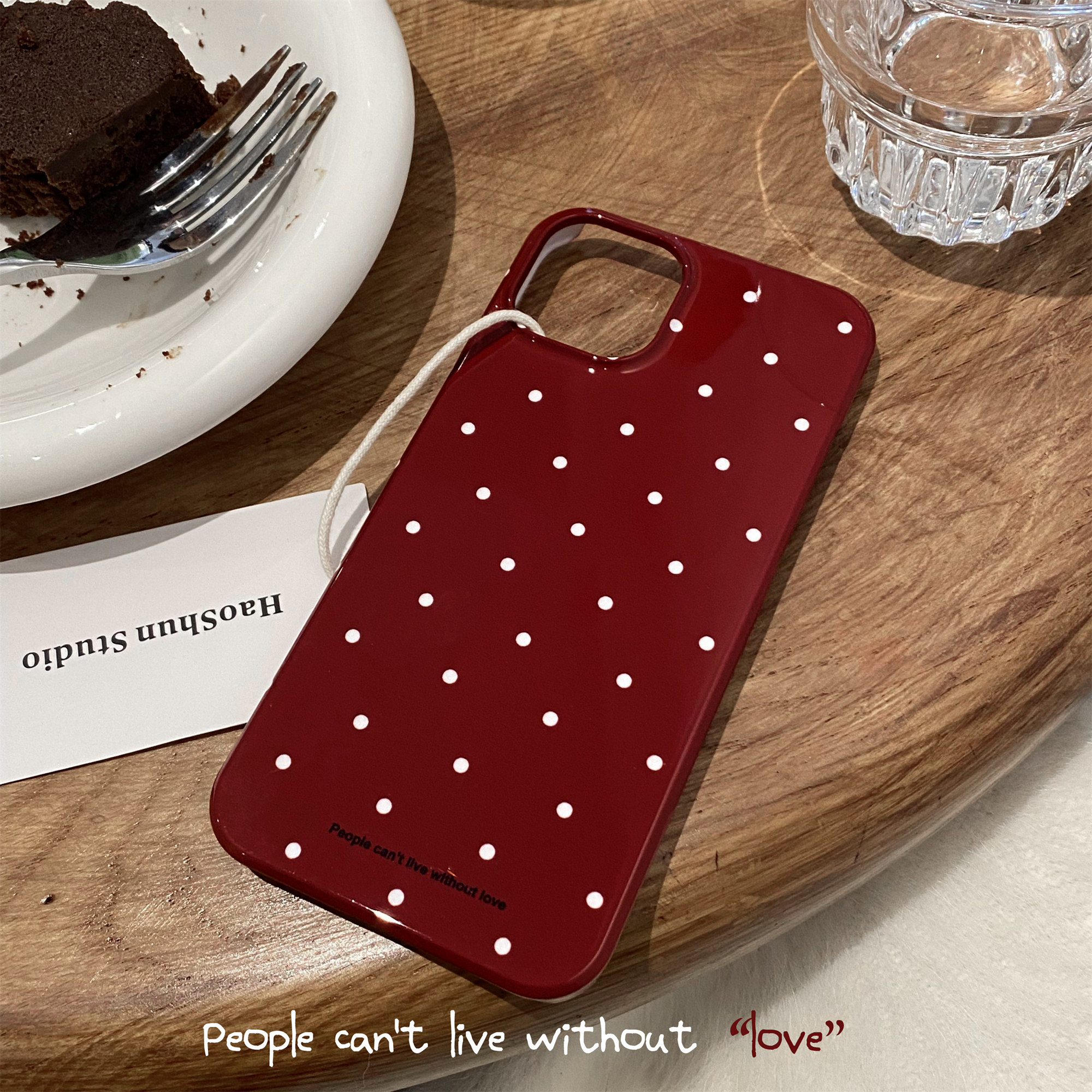 酒红底白点适用于iphone13pro max苹果12手机壳11PRO菲林硬壳i14max新款艺术14proMAX女款情侣半包光面保护套
