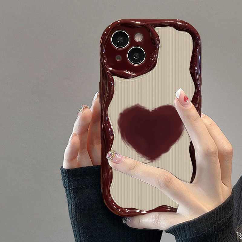 ins极简风酒红爱心皮纹适用iphone15手机壳新款苹果13promax简约12pro小众11高级感14plus女款硅胶防摔保护套
