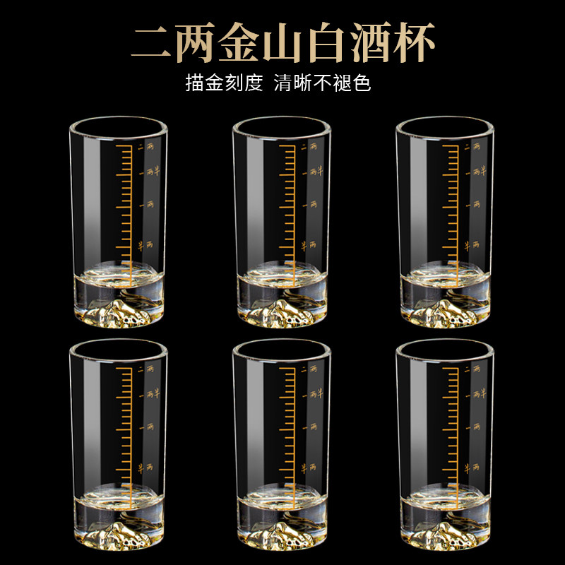 描金带刻度二两白酒杯高级感一两烈酒杯家用轻奢高档玻璃酒具套装