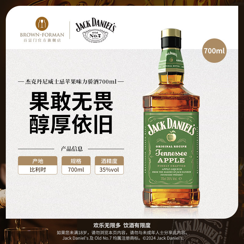 杰克丹尼Jack Daniel's美国田纳西州威士忌进口力骄酒苹果味700ml
