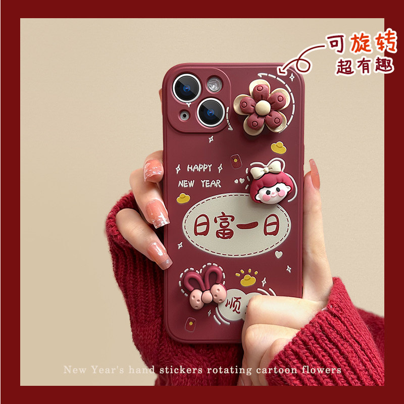 旋转公仔适用苹果13手机壳iphone13pro小众高级感13promax酒红13mini可爱少女爱疯13液态硅胶13pm全包保护套