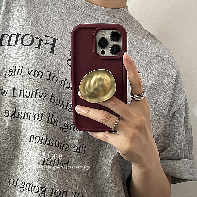 ANNACASE简约气质酒红金色支架适用iphone14promax苹果15手机壳11新款12pro硅胶xs全包13Promax防摔保护套软