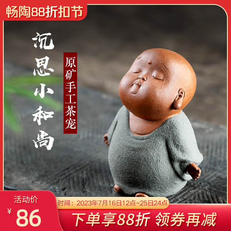 【畅陶】宜兴原矿紫砂手工创意茶道摆件茶宠降坡泥 沉思小和尚