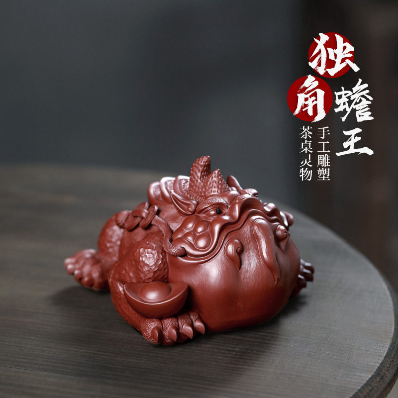 【畅陶】宜兴紫砂手工原矿创意茶宠可养摆大红袍 霸气独角蟾王