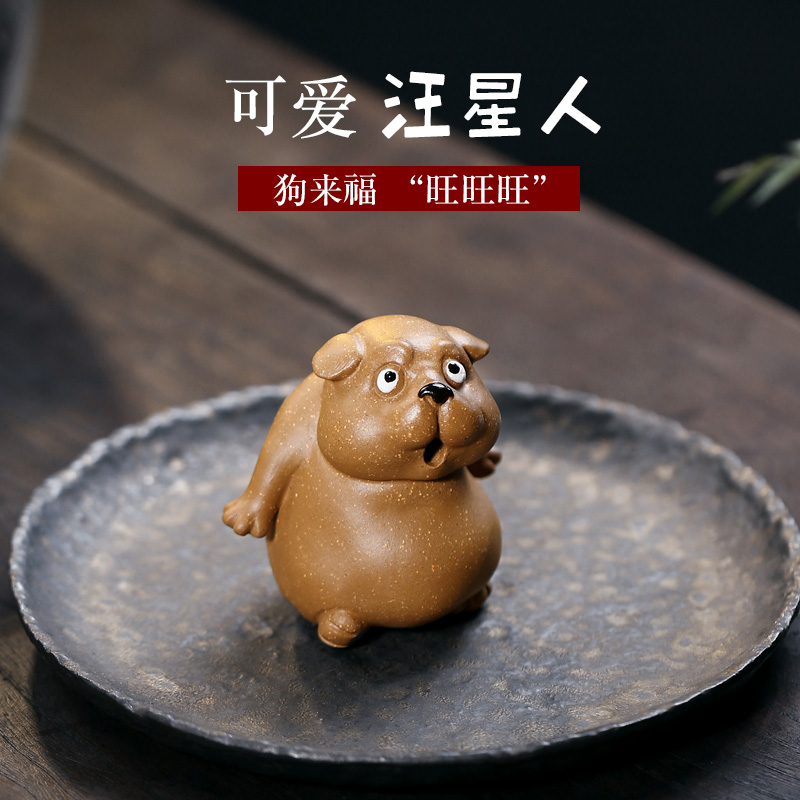 畅陶宜兴紫砂茶宠可养手工茶道茶玩摆件段泥小狗狗 你瞅啥