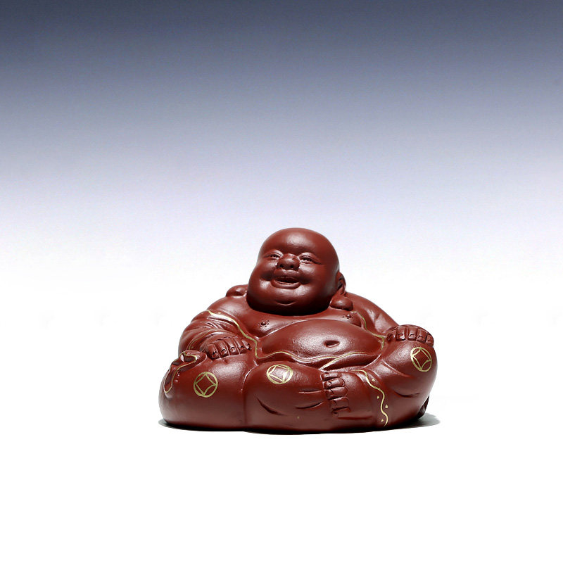 【畅陶】原矿手工紫砂茶宠朱泥款摆件笑口常开描金弥勒佛