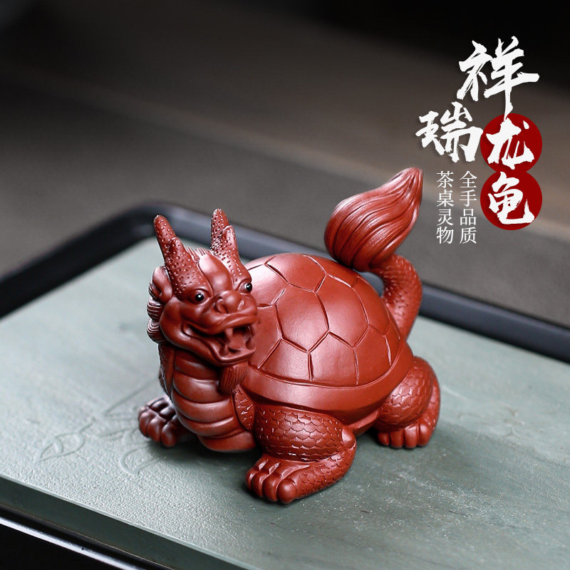 【畅陶】宜兴紫砂茶宠手工创意茶道摆件可养大红袍龙龟