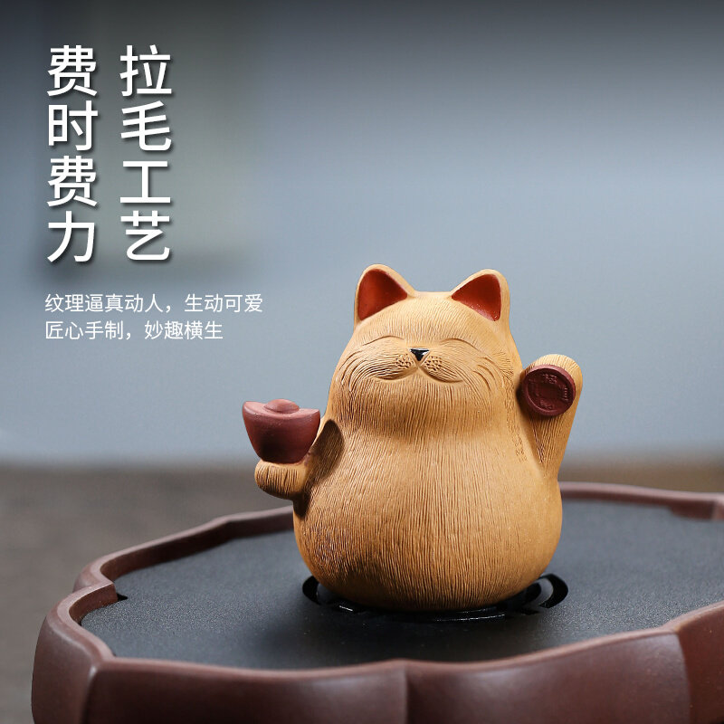 【畅陶】宜兴原矿紫砂茶宠摆件可养功夫茶道茶具配件毛可爱来财猫