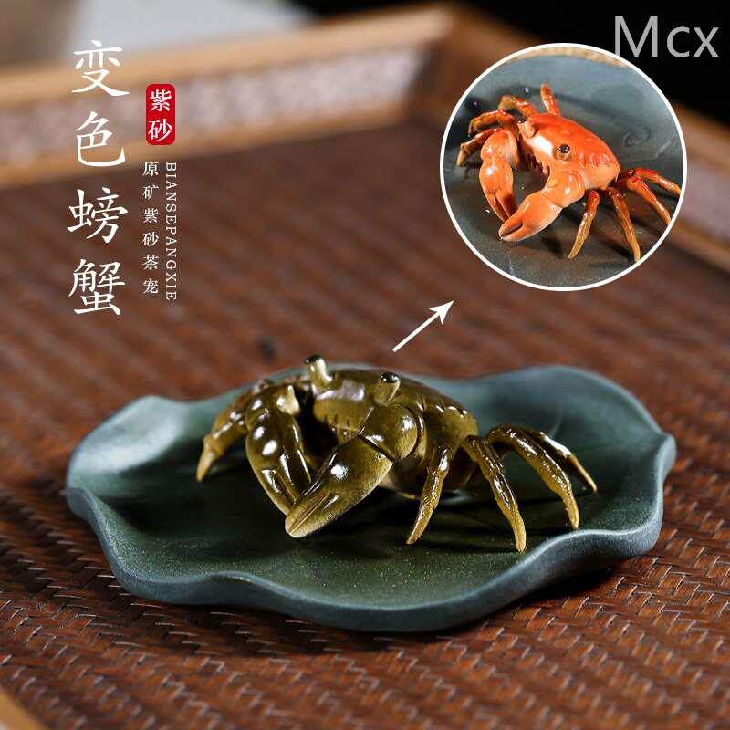 【畅陶】宜兴紫砂壶茶道配件创意茶宠物摆件 茶玩可养 变色螃蟹