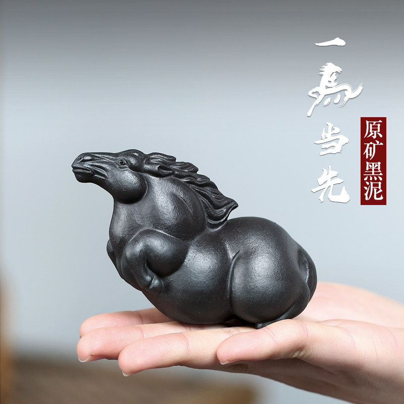 【畅陶】宜兴原矿紫砂茶玩手工家用茶道茶宠摆件黑泥 一马当先