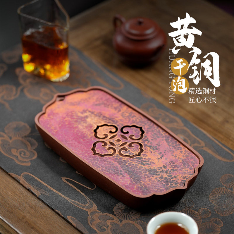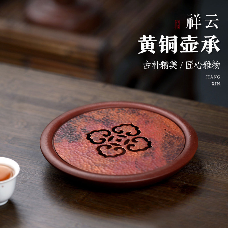 【畅陶】紫砂壶黄铜壶承干泡台家用储水式小茶盘茶道配件如意壶托