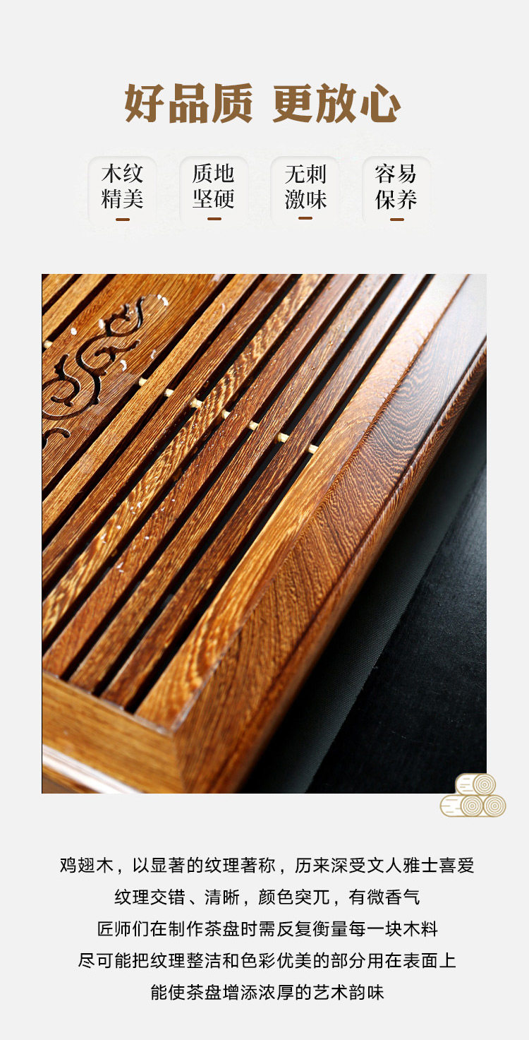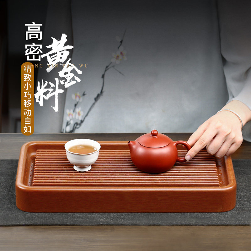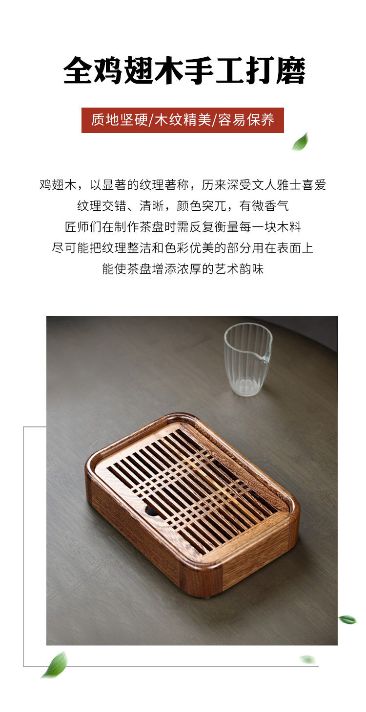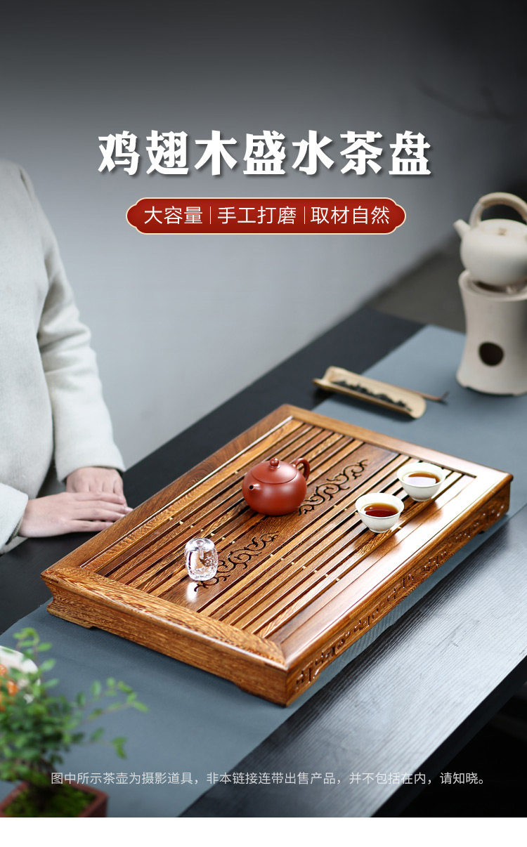 【畅陶】简约小茶盘 家用鸡翅木储水式圆角小茶盘 干泡盘实木托盘
