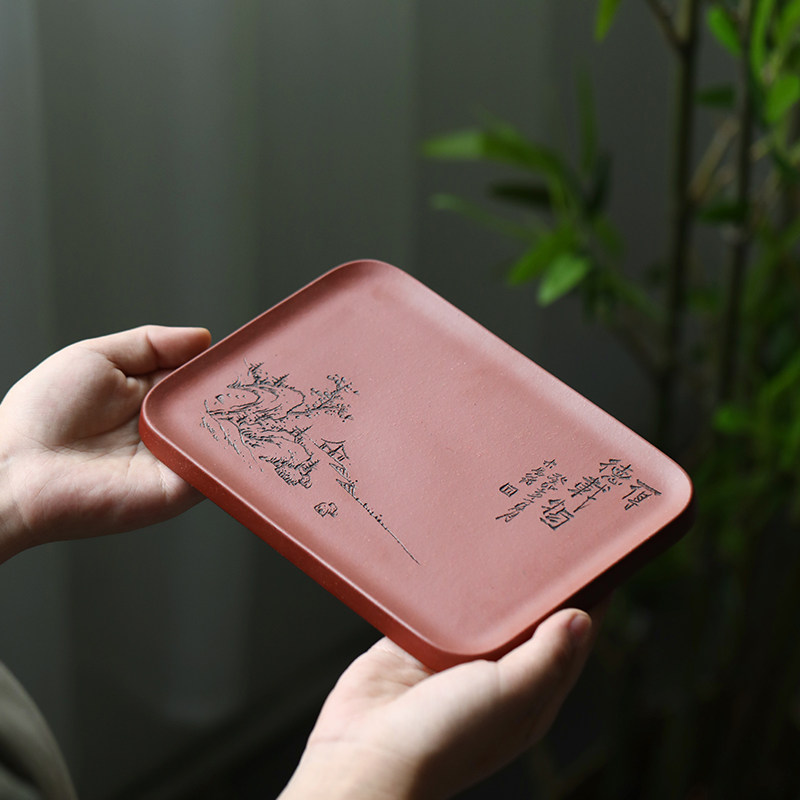 【畅陶】宜兴紫砂壶手工干泡台家用小茶盘茶道配件青段山水壶托