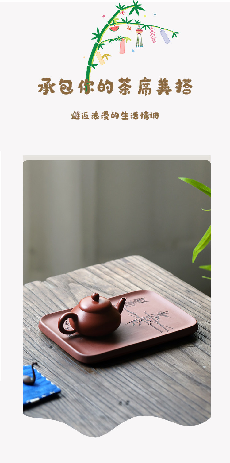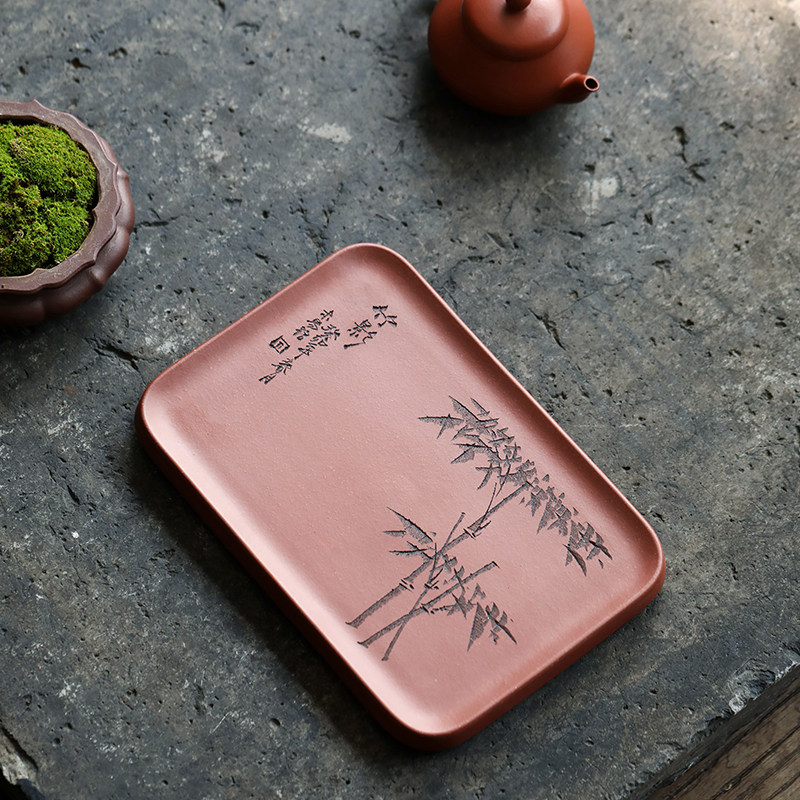 【畅陶】茶盘紫砂茶托小型家用壶承刻绘中式高端紫泥竹影干泡台