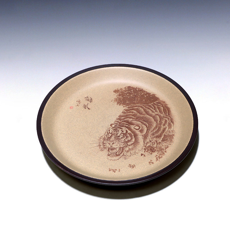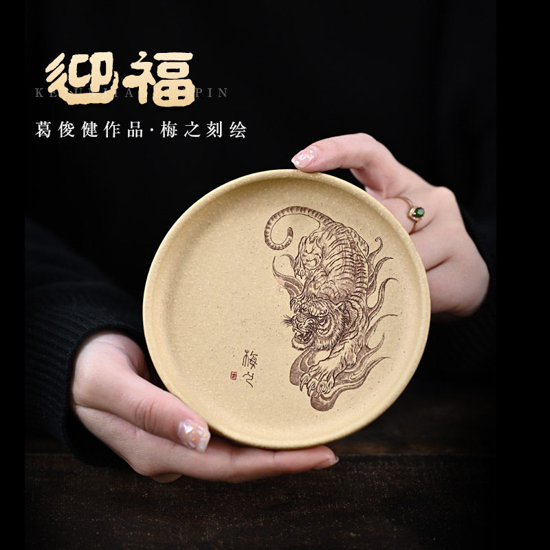 【畅陶】宜兴紫砂壶承干泡台茶盘茶道配件段泥虎啸山林 雄风茶托