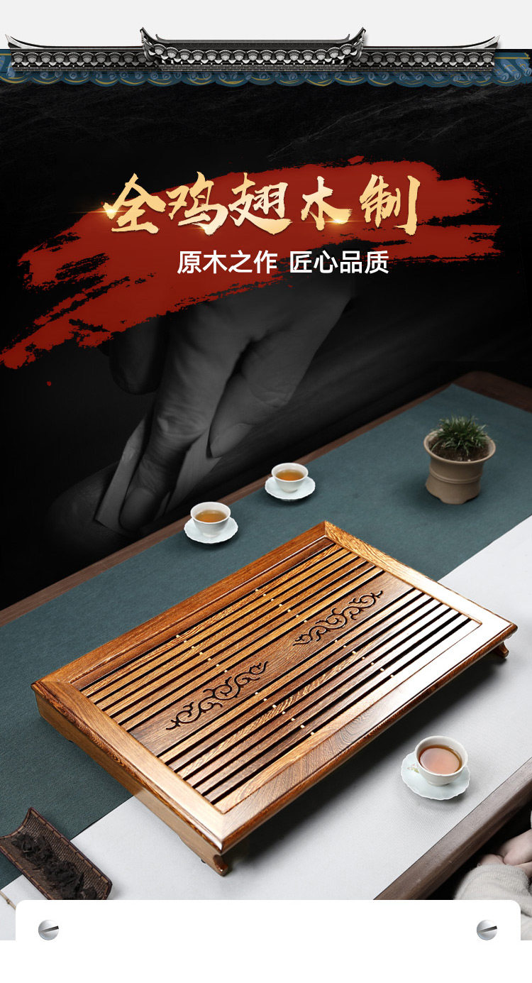 【畅陶】实木抽屉式鸡翅木茶盘 排水家用茶海功夫蓄水茶台茶托盘