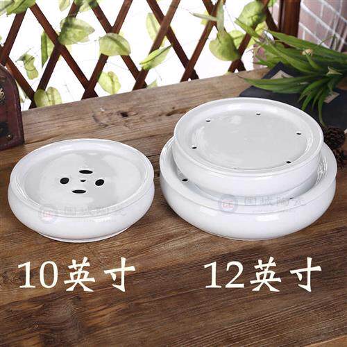 家用陶瓷储水式茶盘小型圆形潮汕茶圆沥水盘 小号瓷小托盘放茶杯
