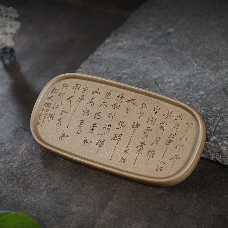 【畅陶】茶盘紫砂茶托小型家用壶承刻绘江湖行中式高端老段干泡台
