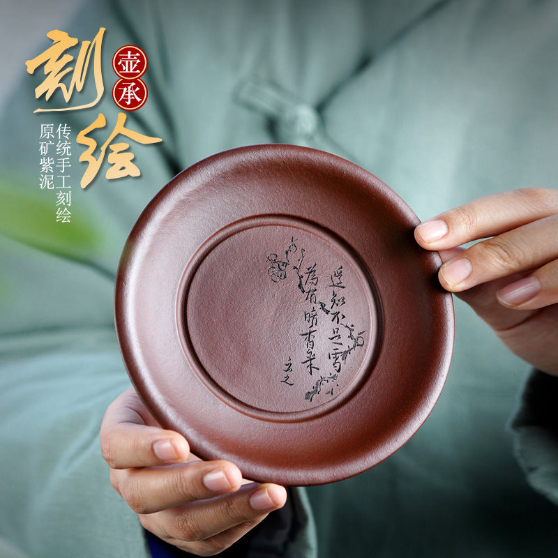 【畅陶】宜兴紫砂壶承干泡台茶盘茶道配件原矿紫泥 幽兰壶垫茶托