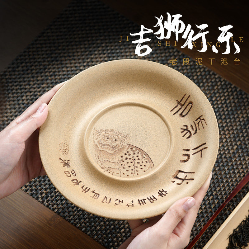【畅陶】宜兴紫砂壶壶承干泡台小茶盘茶道配件老段泥吉狮行乐茶托