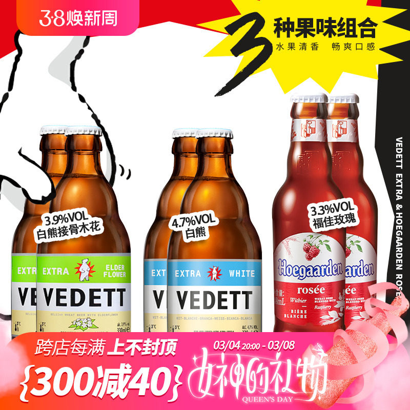 整箱比利时进口VEDETT啤酒/白熊啤酒奇异果/玫瑰/接骨木花330ml
