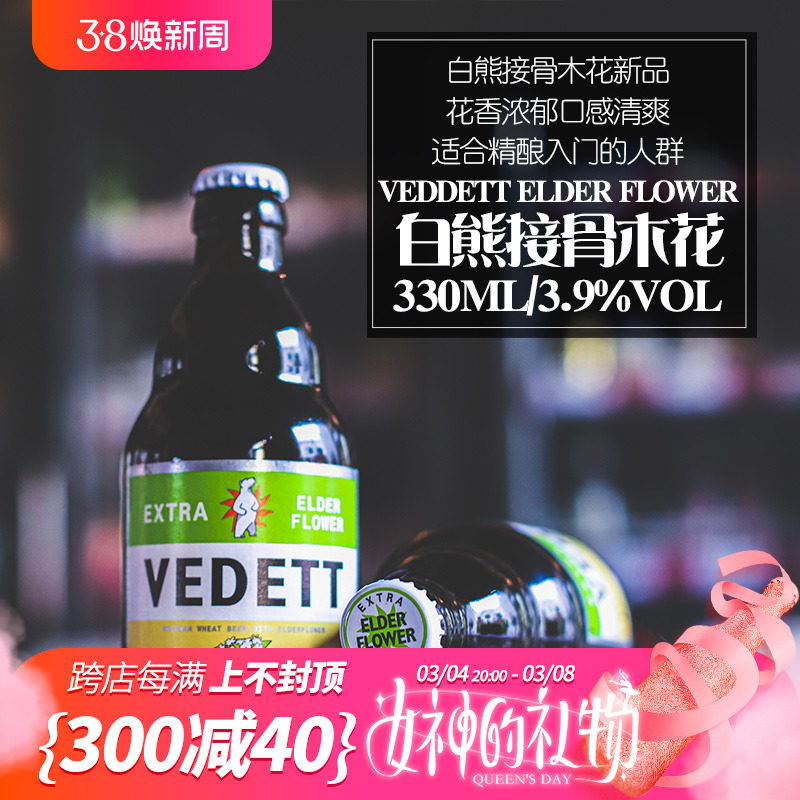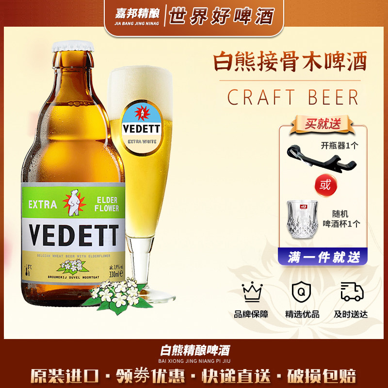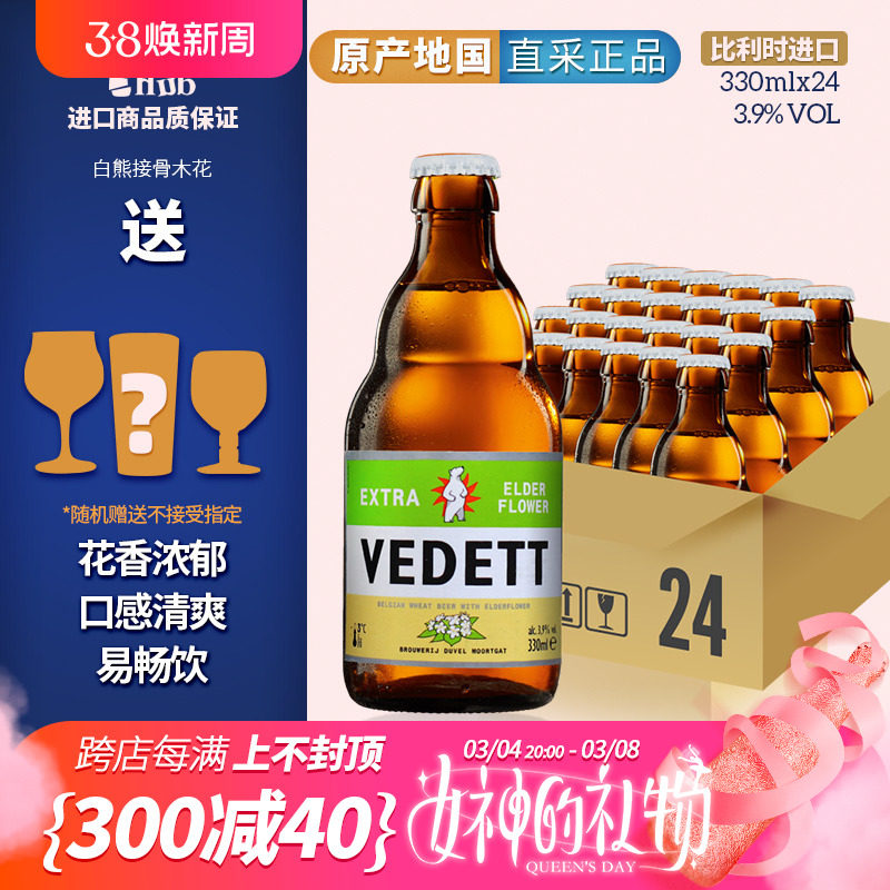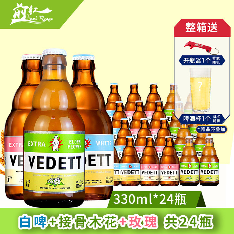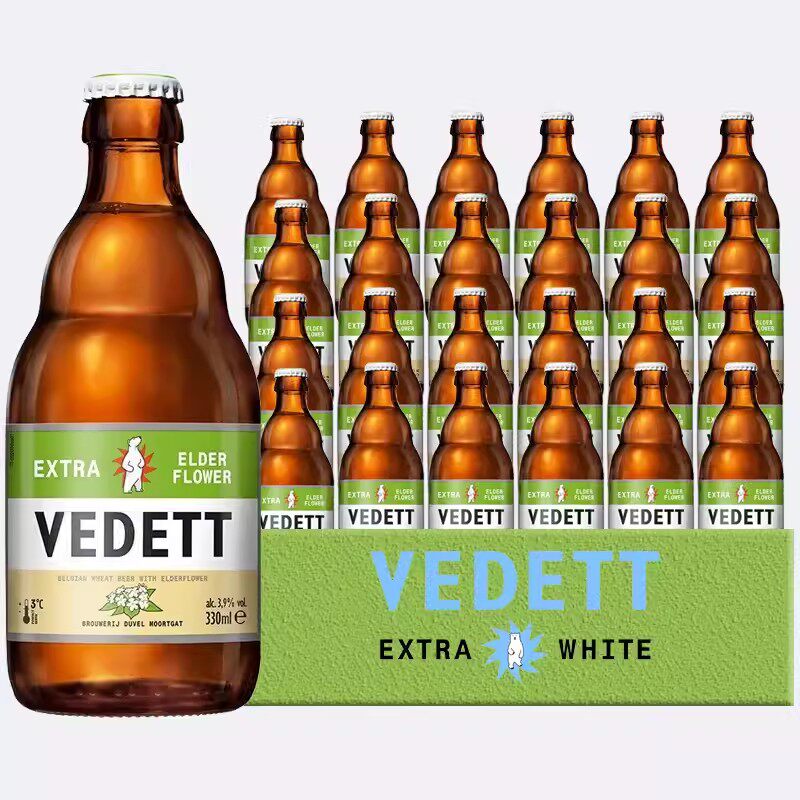 比利时原装进口白熊啤酒小麦白接骨木玫瑰整箱Vedett330ml*24瓶