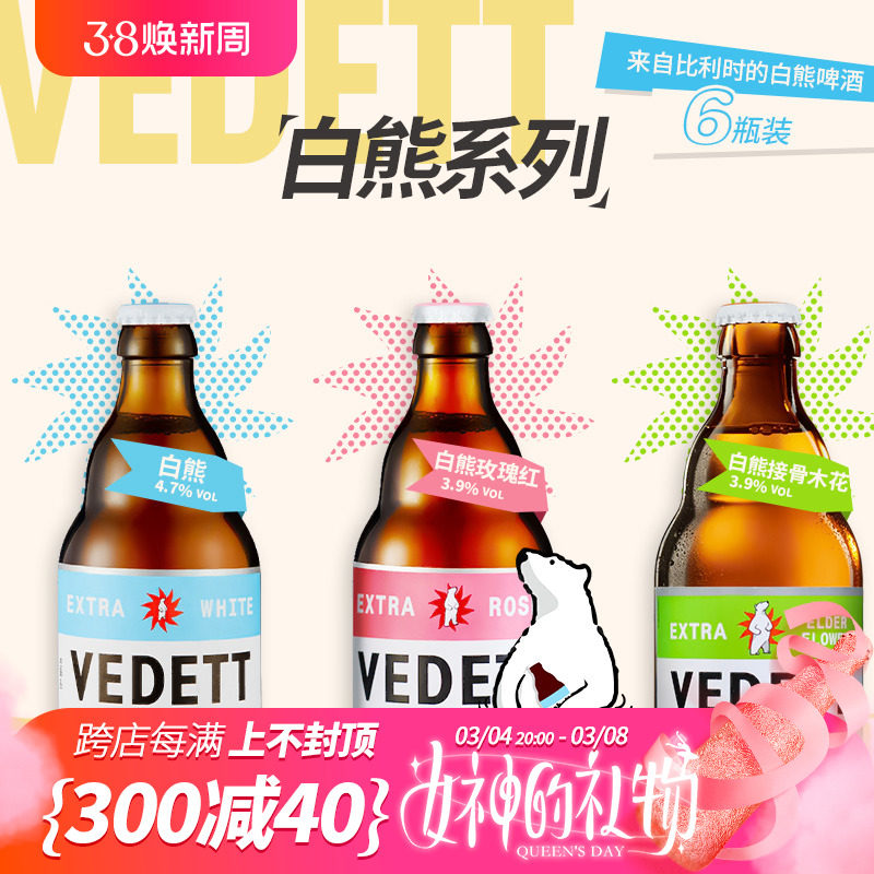 6瓶白熊啤酒 vedett比利时进口小麦精酿给力瓶白啤酒330ml*6瓶装