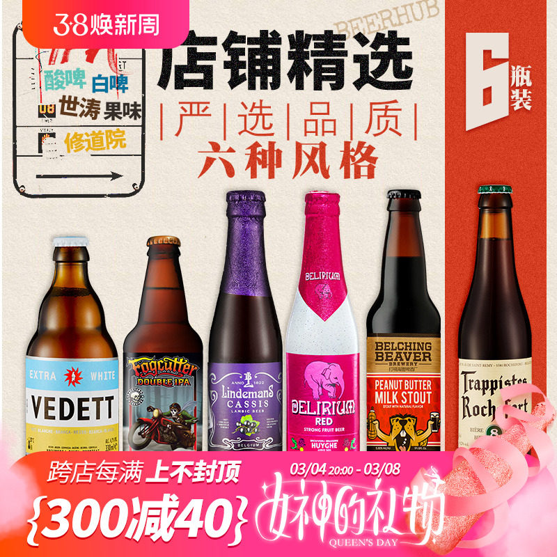 店铺热销精选6款精酿啤酒组合修道院/打嗝/迷失/白熊/林德曼/粉象