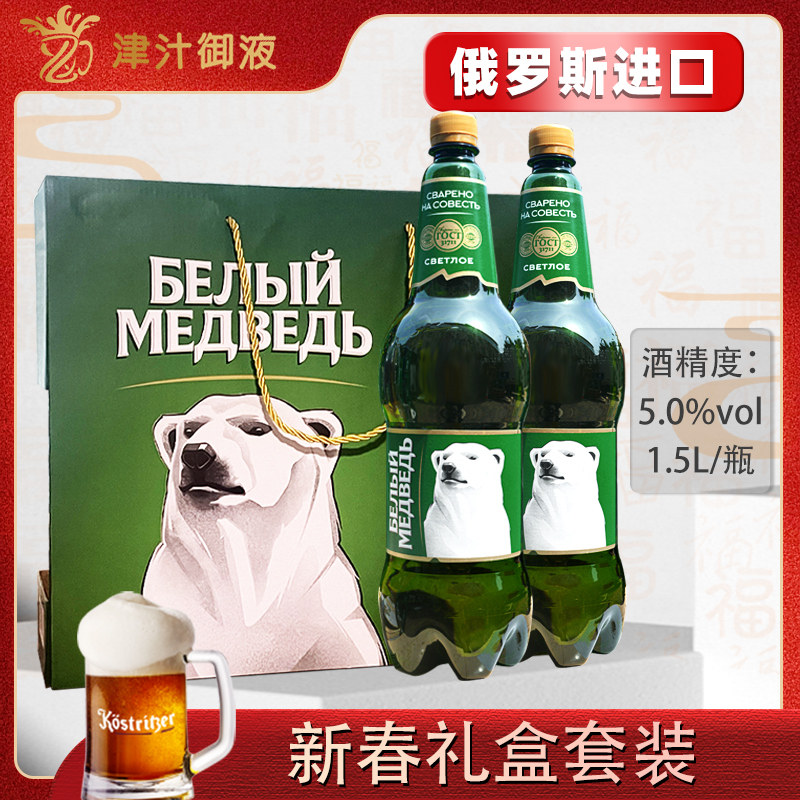 1.5升/桶装大白熊图案啤酒俄罗斯进口贝里麦德维麦芽精酿黄啤烈性