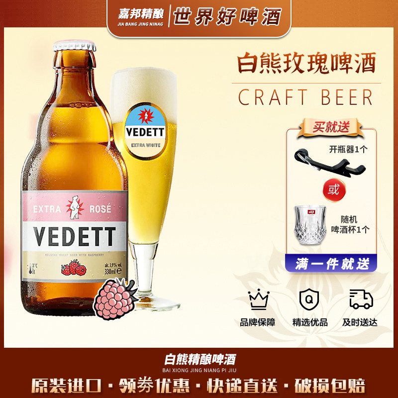 白熊VEDETT比利时原装进口玫瑰奇异果接骨花精酿啤酒330ml*6瓶装