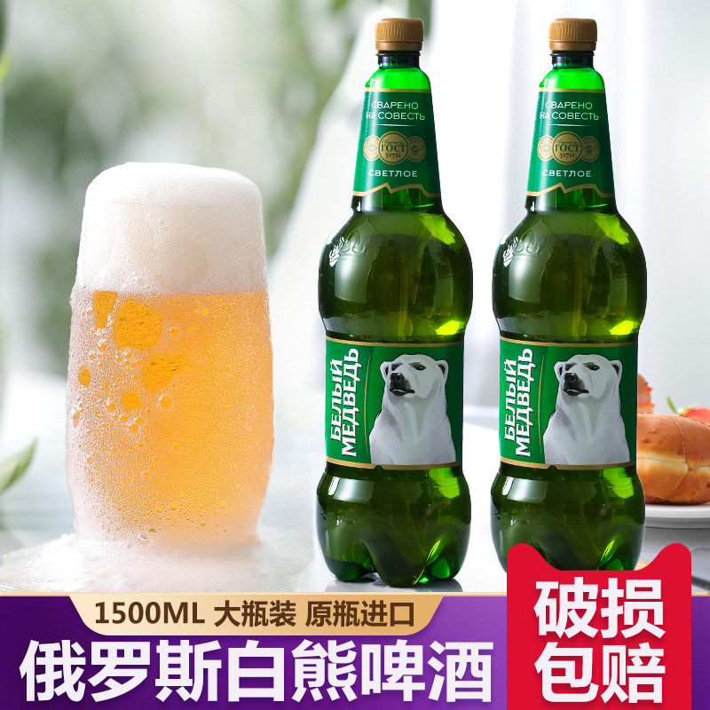 俄罗斯原装进口大白熊啤酒1.5L*6瓶装整箱贝里麦德维熊精酿啤酒