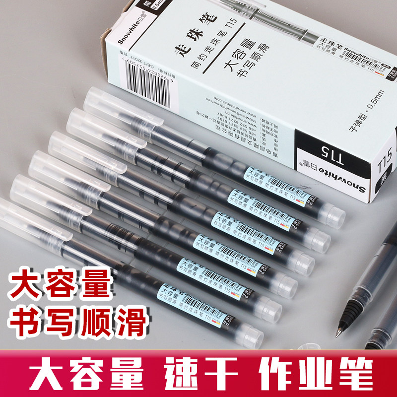 白雪T1277A直液式走珠笔CS笔头速干超大容量黑色墨水红色墨水走珠笔中小学生考试专用笔考试用中性笔