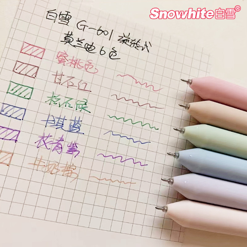 白雪彩色中性笔莫兰迪色系高颜值速干手帐记号笔标记划重点彩笔学生ins手账水笔彩色按动圆珠红笔旋转出芯601