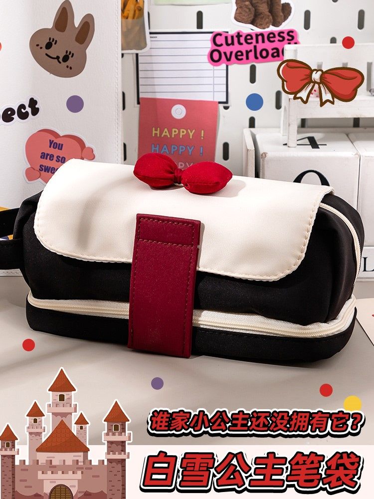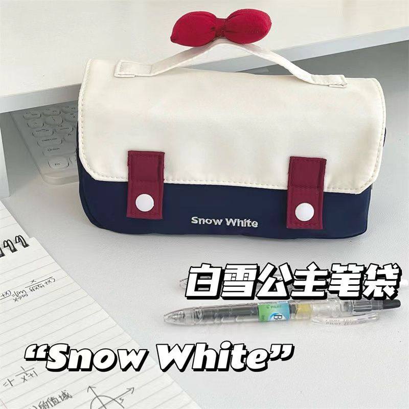 小红书ins风同款白雪公主蝴蝶结拼色笔袋小清新文具盒大容量笔袋