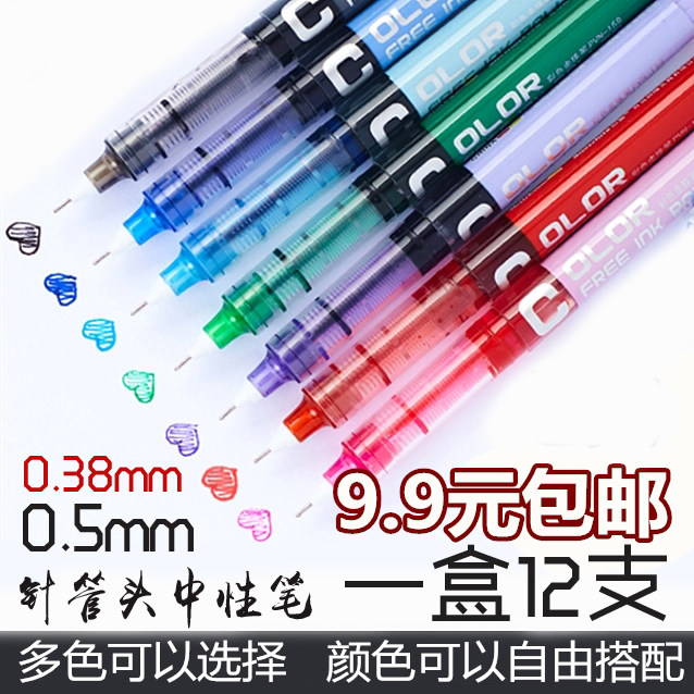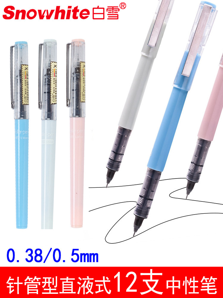 159白雪中性直液式彩色包邮大容量走珠学生0.5笔针管0.38mm签字笔
