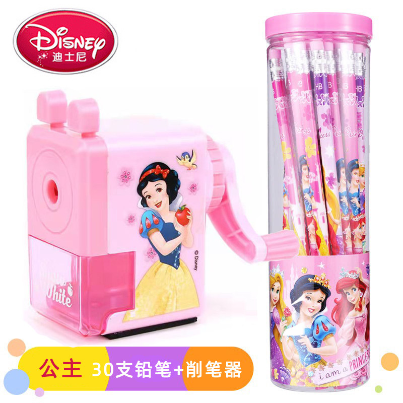迪士尼正品白雪公主铅笔套装卷笔刀HB圆杆小学生写字铅笔卡通时尚幼儿园儿童文具用品安全绘画考试铅笔