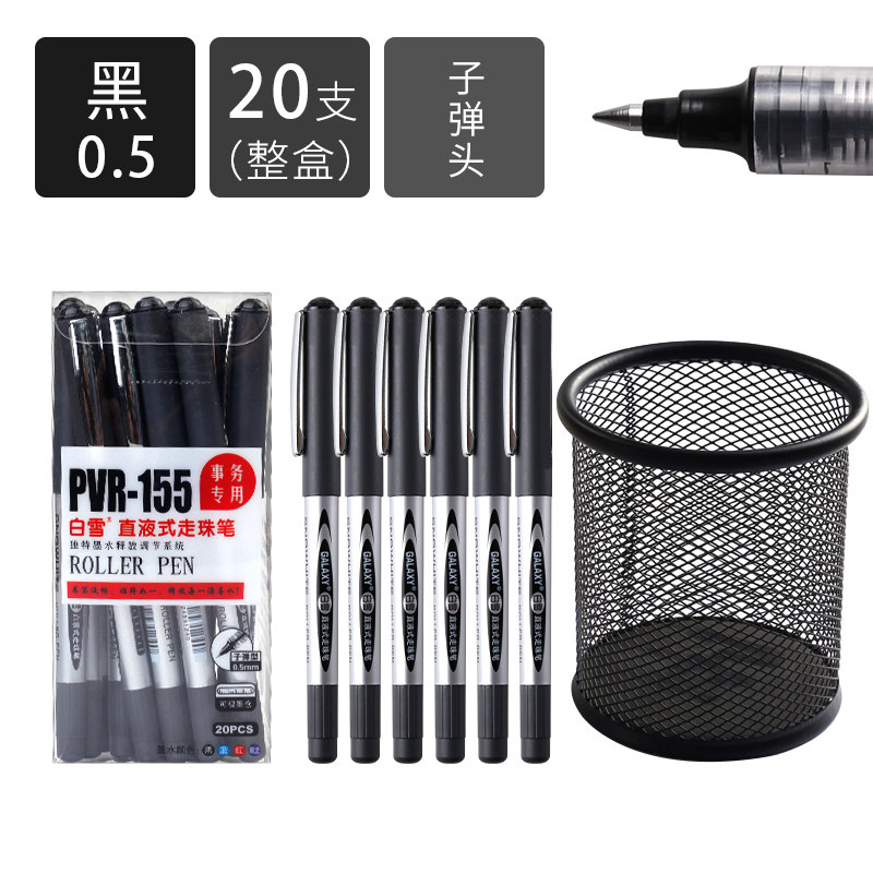 白雪直液式走珠笔0.5mm针管型黑色批发学生用红笔碳素签字中性水性直液pvn-155子弹头166商务高档文具