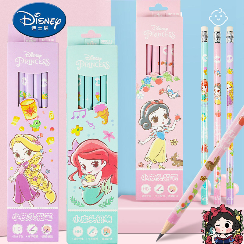 迪士尼正版白雪公主儿童铅笔小学生专用带大橡皮头hb书写练字铅笔卡通无铅圆杆初学者铅笔幼儿园一年级小孩子
