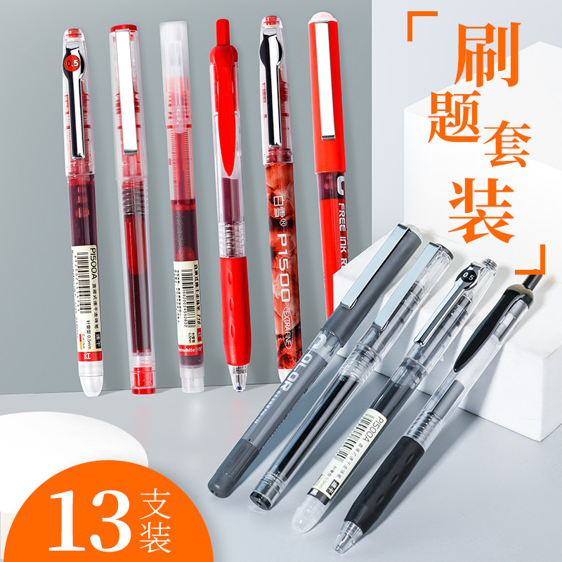 [特卖]白雪直液走珠笔速干刷题签字笔考试学生0.5大容量CS尖红笔