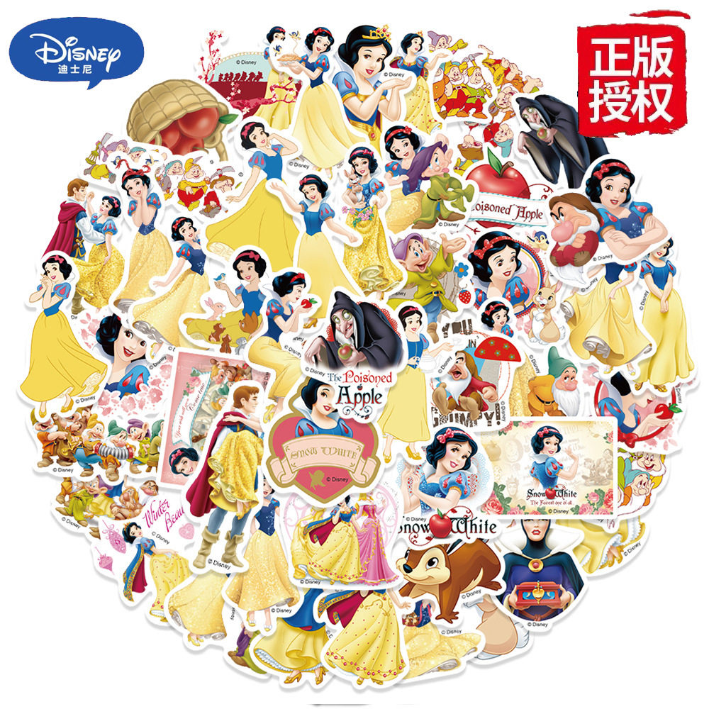 50张迪士尼正版卡通可爱白雪公主儿童行李箱贴纸手机水杯笔记本电脑吉他滑板电动车头盔手账文具装饰贴画防水