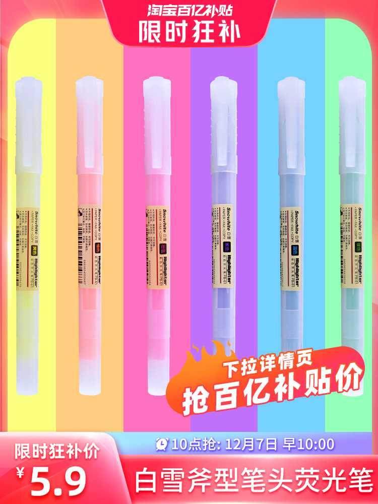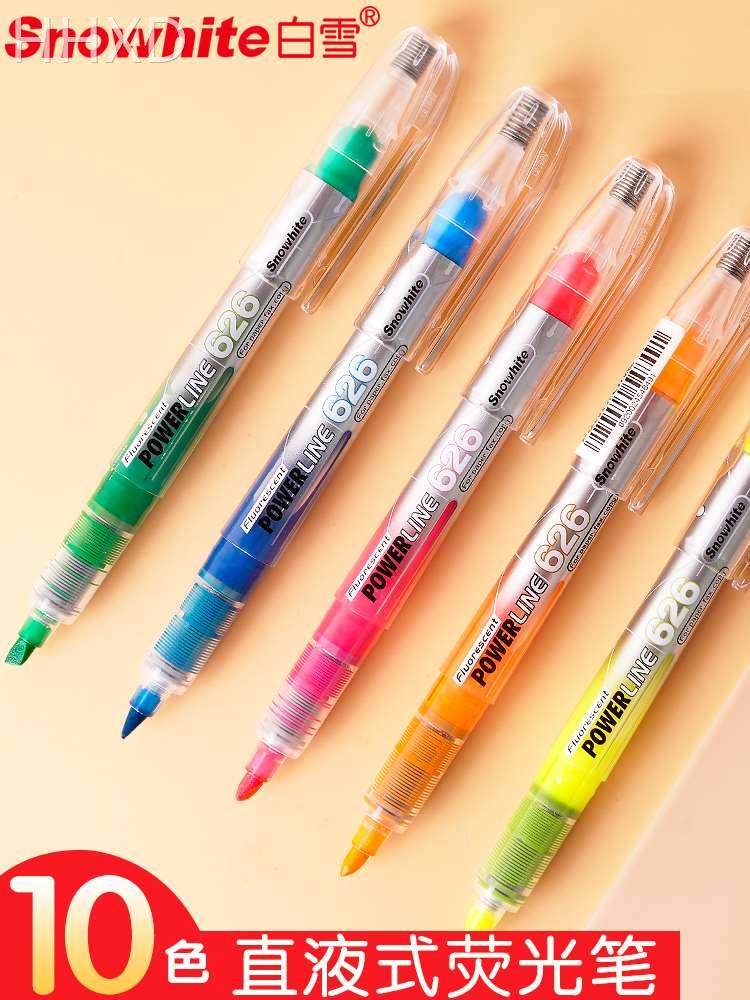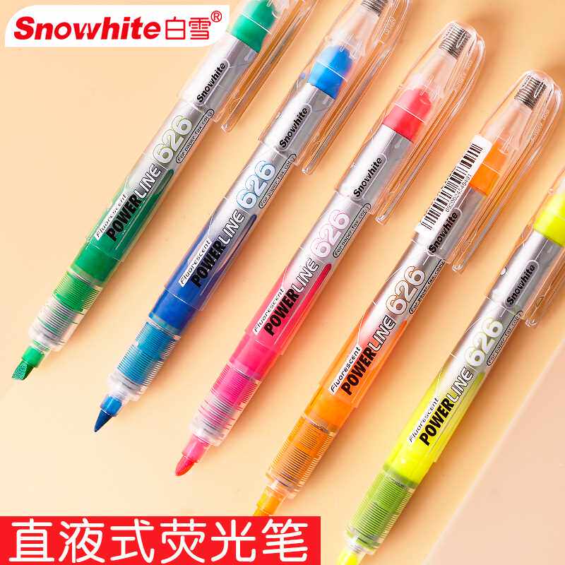 白雪PVP626直液式荧光记号笔彩色荧光标记笔学生用糖果色无味划重