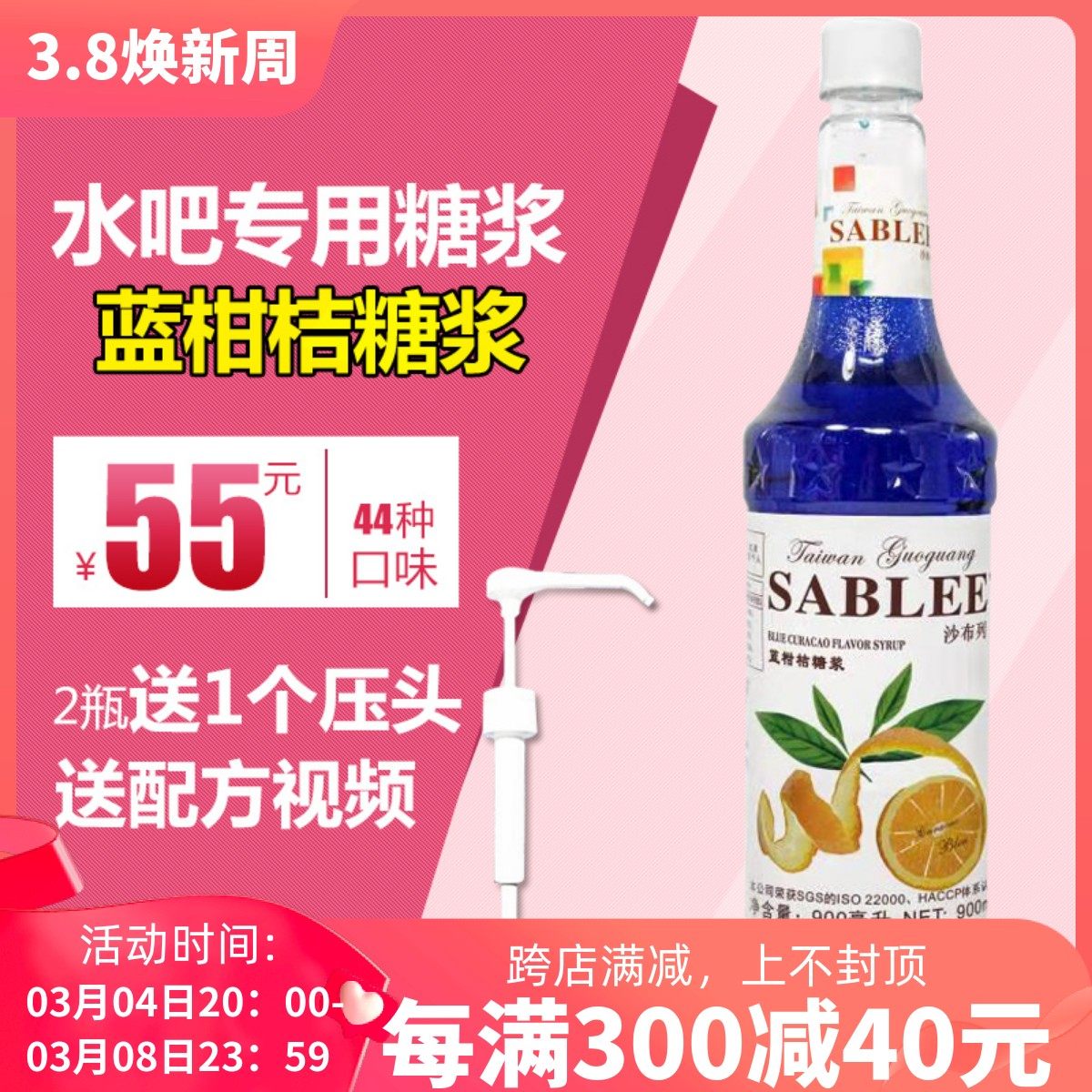沙布列蓝柑糖浆900ml 气泡饮苏打水鸡尾酒奶茶店专用蓝色柑橘果露