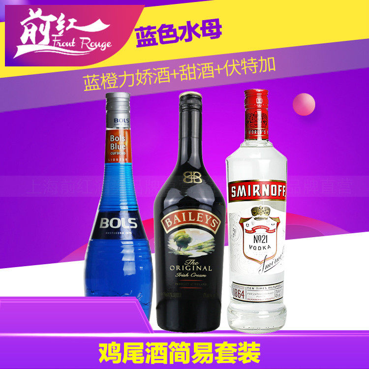 蓝色水母鸡尾酒蓝橙力娇酒/百利甜酒/斯米诺组合套装前红酒业